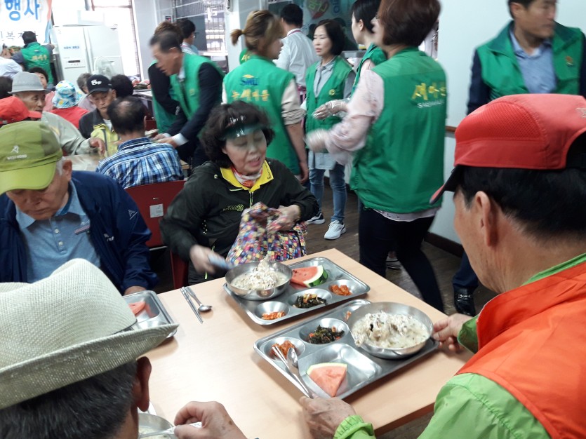 약 350여명의 어르신들께 식사를 대접해드림으로써 어르신들이 너무 기뻐하셨고, 건강식을 제공할 수 있게 후원해주신 두암2동 새마을협의회와 정다운새마을금고에다시 한 번 감사드립니다^^