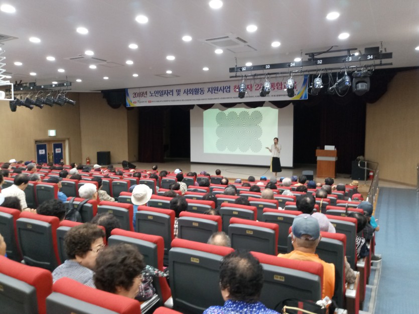 2019년 7월 1일부터 5일까지 노인일자리 및 사회활동지원사업의 2회차 통합교육이 북구 청소년 수련관에서 있었습니다. 자살예방교육, 아동학대예방교육, 안전교육, 스트레스예방교육을 주제로 854명의 일자리 참여자들을 대상으로 교육이 진행되었습니다. 7월의 무더위가 기승을 부리는 속에서도 많은 어르신들이 참여해 주셨고 더 건강하고 안전하게 일자리에 참여하고자 결의를 다지는 시간을 가졌습니다.