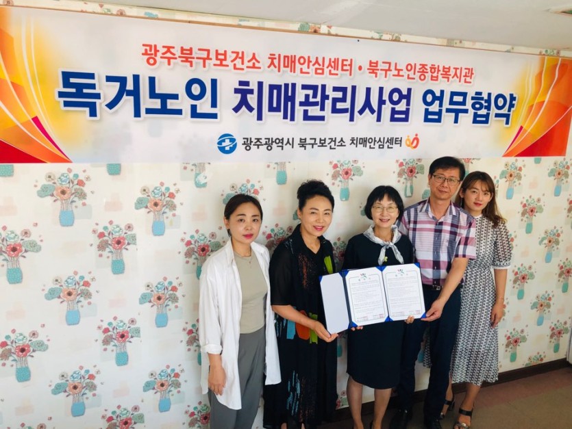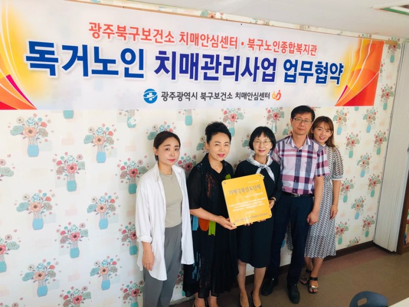 2019년 8월 7일(수) 10시 광주광역시 북구보건소 치매안심센터와 독거노인 치매관리사업 업무협약식을 진행하였습니다.
