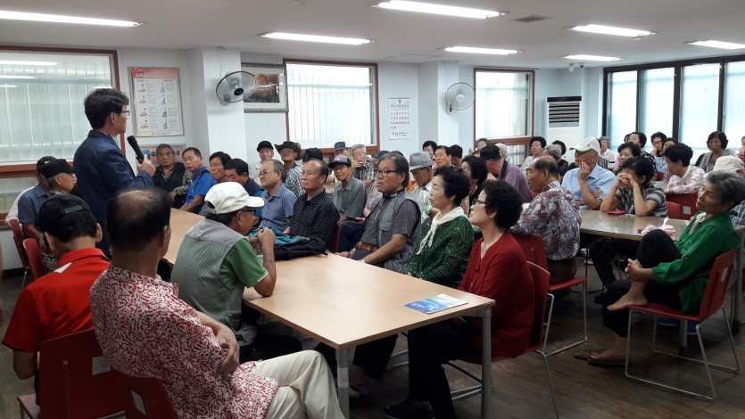 북구청 안전총괄과 연계로 지역사회 어르신들의 지진에 대한 안전의식을 향상시키고, 소중한 재산과 생명을 지킬 수 있도록 안전교육을 실시하여, 실제 지진상황 속에서 피해를 경감시키고 안전을 지킬 수 있도록 하였습니다. 2013년 경주지진과 삼풍백화점을 예를들어 설명하여 어르신들이 많이 공감해주셨고, 일본을 비롯한 다른 나라들의 지진대피법들을 살펴보며 유익한 시간을 가졌습니다.