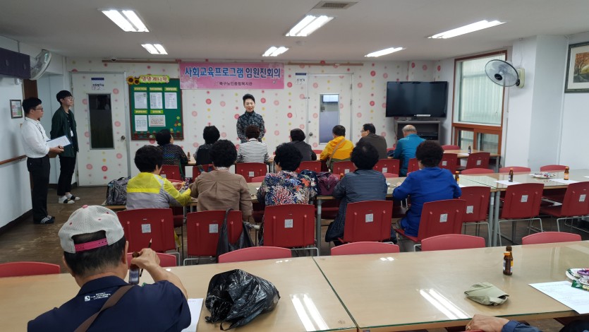 10월 4일(금), 사회교육 프로그램 반장님들을 모시고 제 3차 임원진회의를 개최하였습니다. 우선 3분기 동안 복지관 및 각 반 프로그램 발전을 위해 노력해주신 노고에 감사의 말씀을 드리며 회의를 시작하였습니다. 이번 회의에서는 하반기 복지관 행사 은빛예술제 행사 논의 등을 하였으며, 3분기 동안 어르신들이 활동 하시면서 애로사항이나 논의하고 싶으셨던 부분을 함께 이야기 해보는 시간을 가졌습니다.