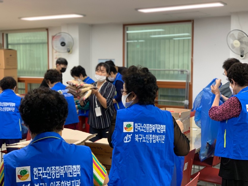 (사랑의식당 미운영으로 수급자 및 차상위 어르신들께 전달할 대체식품 포장 활동 진행)