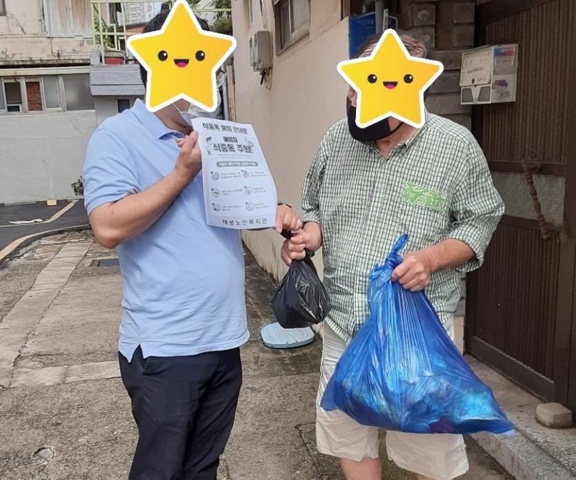 8월 첫째주 사랑의식당에서는 코로나19로 인해 식당 운영을 하지 않음에 대체식품과 함께 여름철 식중독 예방 안내문을 전달해 드렸습니다.