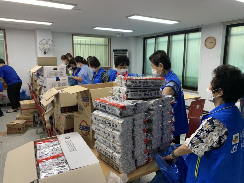 (사랑의식당 미운영으로 수급자 및 차상위 어르신들께 전달할 대체식품 포장 활동 진행)