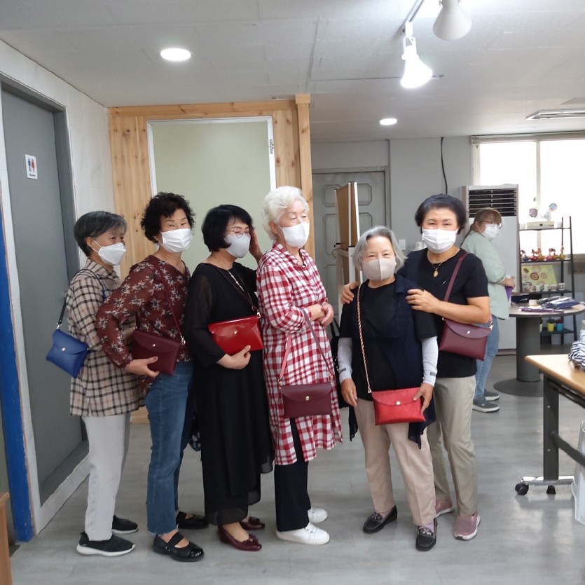 어르신들이 직접 만든 가죽가방을 보시고 너무 행복해 하셨습니다.*^^*