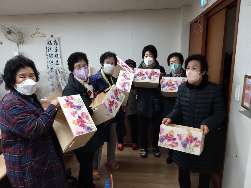 북구치매안심센터에서 방문하여 어르신들을 위하여 치매검진을 미리 진행하였으며, 손을 움직이는 작업을 함으로써 예쁜 우드박스를 만들어 내어 만족도가 높은 결과를 내었습니다. 프로그램에 도움을 주신 치매안심센터에 감사합니다^^ 어르신들 건강하세요~~
