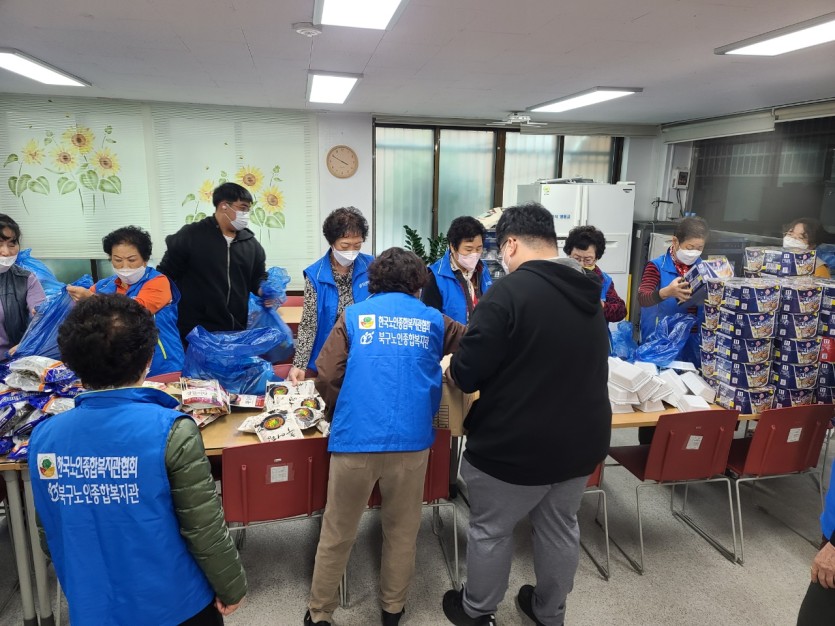 (사랑의식당 미운영으로 수급자 및 차상위 어르신들께 전달할 대체식품 포장 활동 진행)