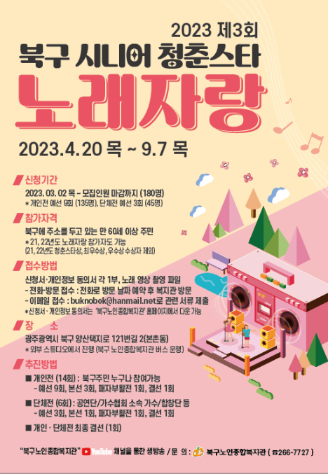 "북구 시니어 청춘스타 노래자랑" 참여자를 모집합니다.