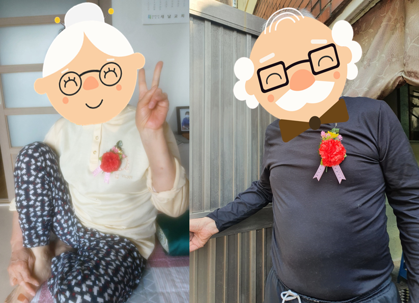 노인맞춤돌봄서비스사업에서는 어버이날을 맞아 대상자 750명의 어르신들에게 카네이션을 달아드렸습니다. 가정의 달인 5월 찾아오는 이가 없어 외로움을 크게 느끼시는 어르신들을 위해 카네이션을 나눔으로써 소외감이나 외로움을 조금이나마 덜 수 있는 시간이 되었습니다.