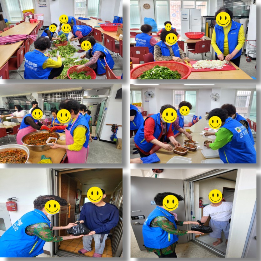 노인맞춤돌봄서비스사업에서는 "나눔누리봉사단"과 연계하여 코로나19로 외부활동이 단절되어 답답함을 느꼈던 어르신들에게 주도적으로 모임을 구성하여 운영할 수 있도록 지원하여 사회적관계망 회복 및 사회참여 기회를 제공하고자 어울림협동조합에서 후원받은 열무로 김치를 만들어 장기화된 코로나로 인하여 몸도 마음도 지친 홀로 계신 독거어르신들에게 입맛도 살리고 영양이 넘치는 “행복 담은 요리조리 쿡쿡” 반찬을 만들어 전달하면서 말벗서비스를 제공해 드림으로 대상자 어르신들의 정서적 지지체계를 탄탄하게 하고 이웃 간의 돈독한 관계를 유지하면서 따듯한 마음과 관심을 전하며 소통하는 시간이 되었습니다.