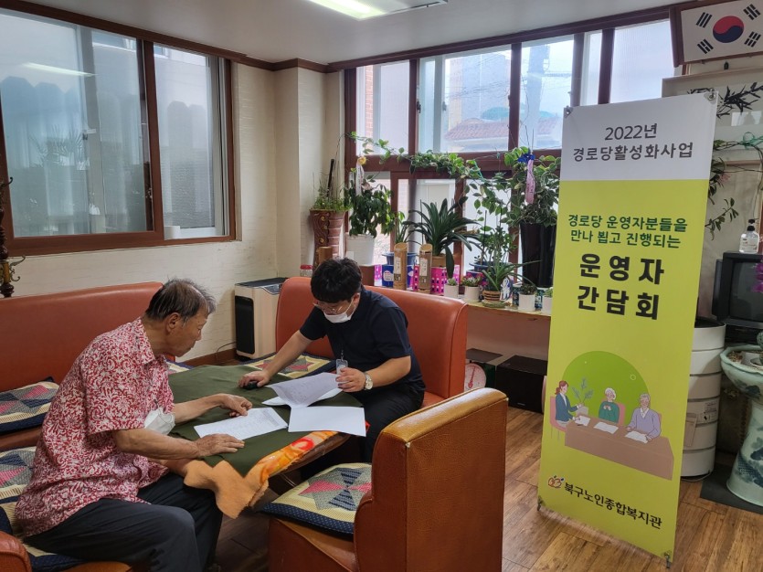 올해 초 코로나19로 제한되었던 경로당의 방문이 완화되어 경로당 운영자분들을 만나 뵙고 상반기 운영자 간담회를 실시하였습니다. 올해는 작년과 다르게 6개소에 소 15개소로 늘려 다양한 프로그램을 진행할 예정이며, 하반기에 진행될 프로그램에 대하여 전달함으로써 운영자분들의 이해를 도와드리고 별도로 질의응답 시간을 가져 운영자분들과 의견을 주고받는 유익한 시간이 되었습니다.