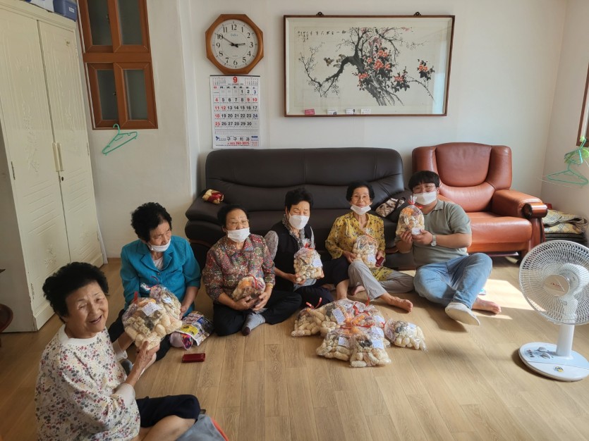 어르신들께서 경로당에서 함께 이야기 나누시며 두고 드실 수 있도록 한과(유과)를 전달해 드렸으며,