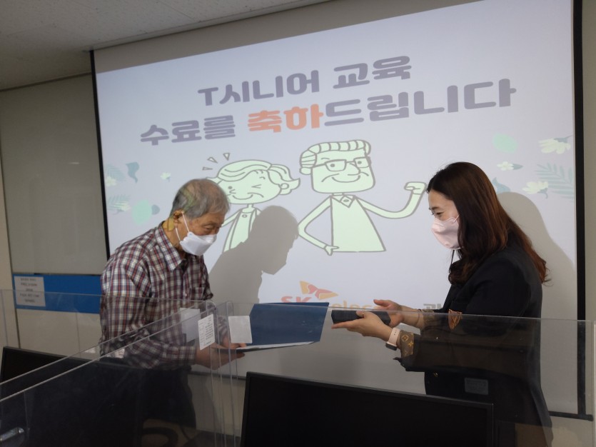 2022.09.27(화) SK텔레콤 서비스센터와 함께 하는 실버안심센터 교육이 마무리되었습니다. 스마트폰, 무인 기기의 사용을 어려워하는 어르신을 대상으로 정보 활용 능력을 키우고자 5월부터 약 3개월간 진행되었는데요. 그동안 스마트폰의 옵션 및 기본앱의 활용에 대해 맞춤 강의를 진행하였고, 실생활에서 자주 사용하는 기능에 대해 학습하고 이해를 도와 어르신들이 만족스러워하셨습니다.