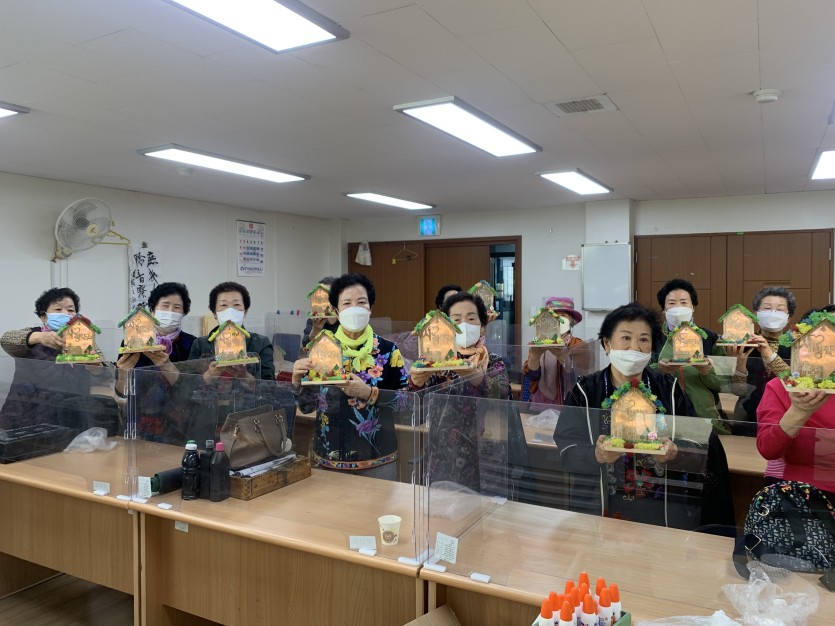 10월 13일(목), 북구치매안심센터와 연계하여 기억두드림! 찾아가는 치매예방교실 3회차 프로그램인 공예수업을 진행하였습니다. 내 집 꾸미기 작업은 알록달록한 색깔로 나만의 집 정원을 꾸미듯이 색다른 경험을 하였습니다.