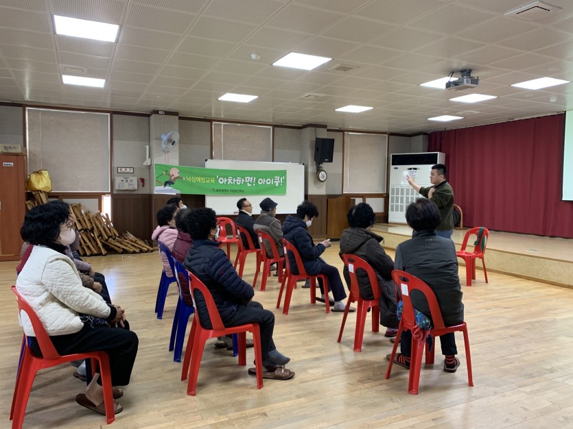 11월 13일(월), 광주 북구보건소와 연계하여 동신대학교 작업치료학과 교수님의 낙상예방교육을 진행하였습니다.