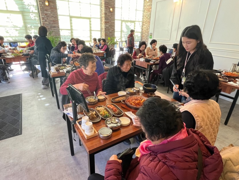 강사님과 참여어르신들을 모시고 이번년도에 진행한 사업에 대해 이야기하고 좋았던 점, 아쉬웠던 점을 나누며 서로 소통하는 시간을 가졌습니다. 11월에 진행하였던 결과발표회가 너무 만족스러웠다며 내년에도 프로그램을 진행하는지 여쭤보시는 어르신도 계셨습니다. 11월을 끝으로 종강하는 수업이라 아쉬우면서 시원하다고 하시며 식사를 하시고 마무리하였습니다.