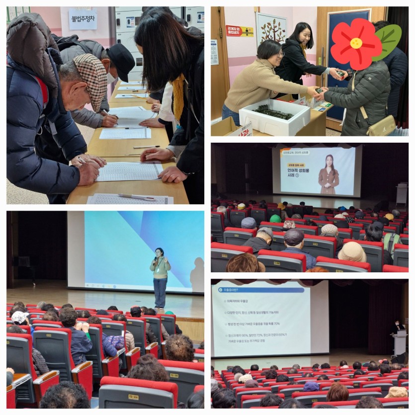 이번 활둉교육은 성희롱 예방교육, 교통안전교육, 우울증 예방교육의 내용으로 진행되었으며, 활동교육을 통해 일자리 사업을 참여하는 일년 동안 어르신들께 일어날 수 있는 문제를 사전에 교육함으로서 앞으로의 활동이 올바르고 안전하게 이루어 질 수 있도록 하는 시간을 가졌습니다.