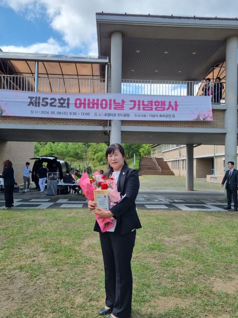 가정의 달을 맞이하여 5월 8일(수) 제 52회 어버이날 기념행사에서 시장 표창 "장한 어버이상"을 한연심 선생님께서 수상 하였습니다.