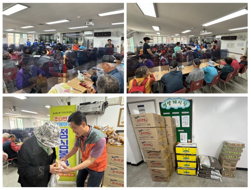 5월 10일(금) 5월 가정의 달을 맞이하여 북구노인종합복지관에 기아자동차 조나반에서 후원 물품(쌀, 보리건빵, 바나나, 음료) 등을 전달하고 배식 봉사 활동을 진행하였습니다.