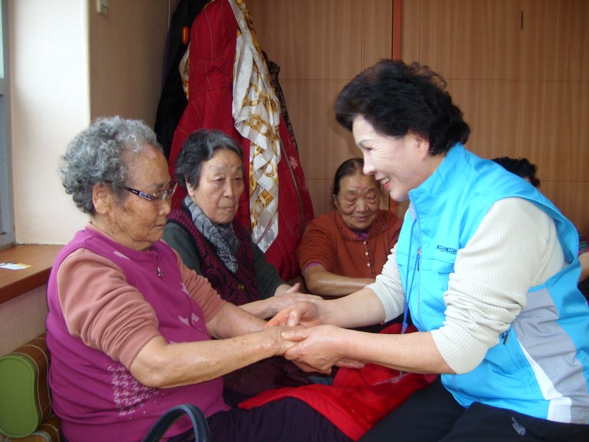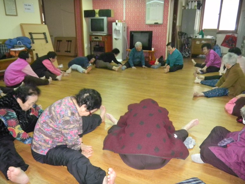 스트레칭으로 어르신들의 건강을 지키고 손맛사지를 하여 손근육 운동과 피부에 탄력을 주는 시간이었다.