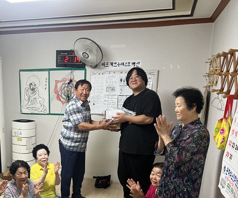 경로당 어르신들께서는 항상 복지관에서 명절마다 잊지 않고 우리를 찾아와 이렇게 맛있는 음식들과 선물을 주고 간다며 너무 감사하다고 말씀하셨습니다.