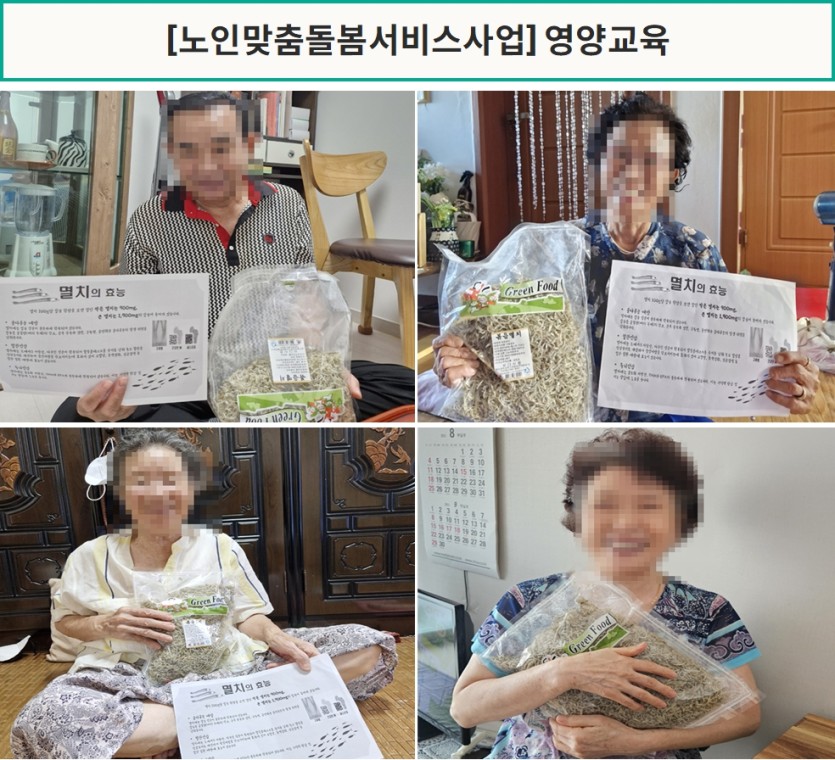 노인맞춤돌봄서비스사업에서는 영양교육을 통해 노년기 어르신들에게 골다공증과 혈관 질환 예방에 멸치가 큰 도움이 될 수 있음을 강조하며, 건강한 식생활을 실천할 수 있는 시간을 마련했습니다.