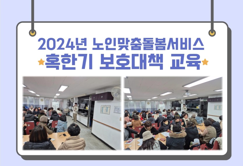 북구노인종합복지관 노인맞춤돌봄서비스에서는 겨울철 한파로 인한 안전사고를 예방하고 돌봄 체계를 강화하기 위해 수행인력을 대상으로 혹한기 보호대책 교육을 진행하였습니다.