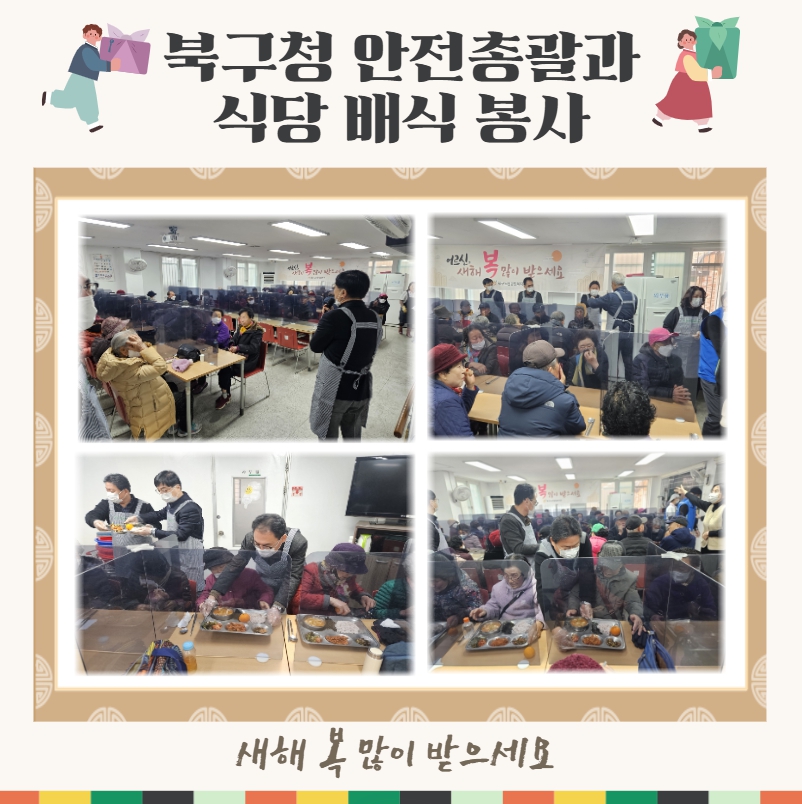2025년 을사년 새해를 맞아 사랑의식당에 북구청 안전총괄과에서 안전교통국장 및 직원분들이 배식봉사를 오셨습니다.