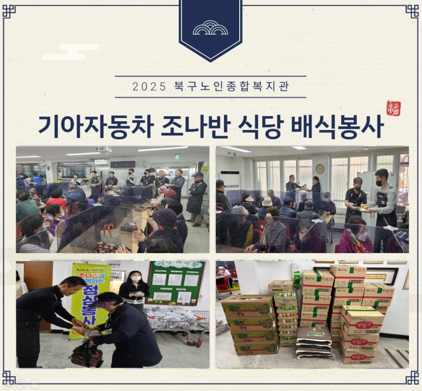 기아자동차 조나반 봉사단에서 북구노인종합복지관에 후원 물품(쌀, 쌀과자, 음료, 바나나 등)을 전달해 주셨습니다.