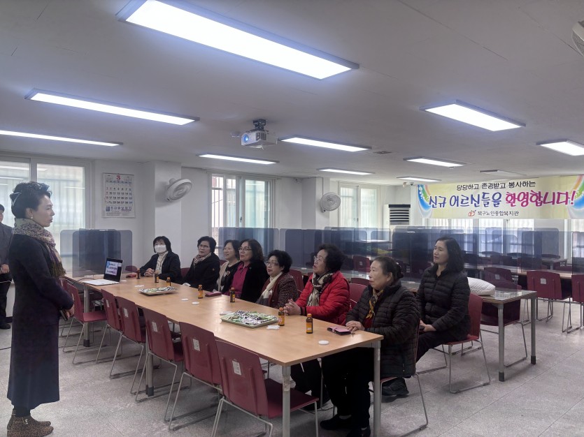 관장님 인삿말로 오리엔테이션을 시작하였으며 복지관을 소개해드리고 프로그램 이용에 필요한 접수 방법과 같은 이용수칙, 기타 안내사항 등을 알려드리는 시간이 되었습니다. 복지관에 등록하신 어르신들 환영합니다^^