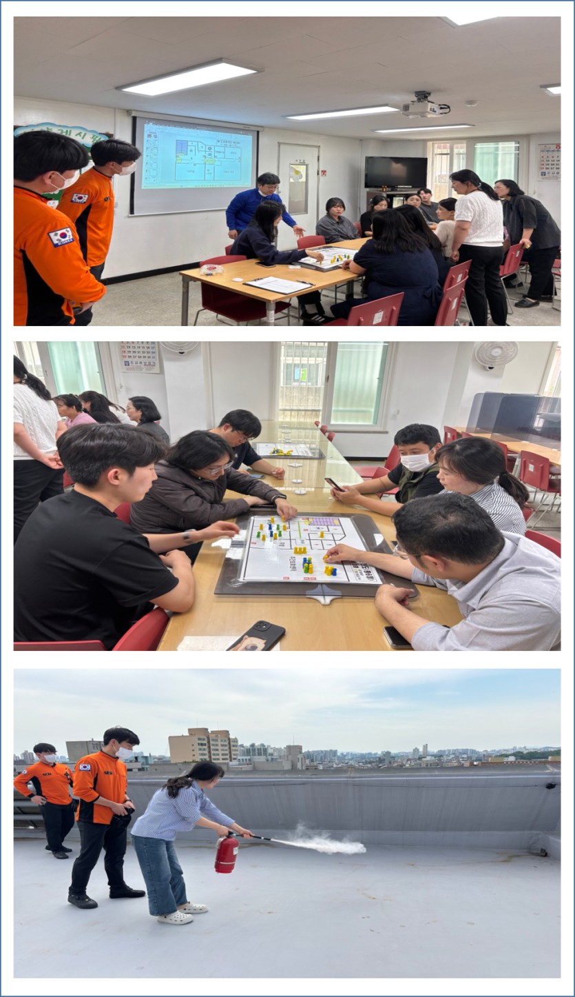 2025년 5월 14일(수) 북구노인종합복지관 직원들을 대상으로 소방교육 및 소화기 사용 시연을 실시하였습니다.