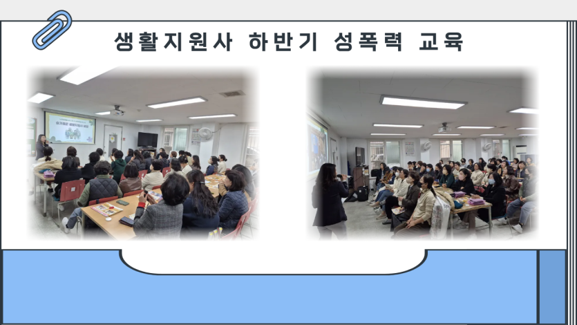 2025년 하반기 노인맞춤돌봄서비스 생활지원사 성폭력, 성희롱 예방교육을 진행하였습니다.