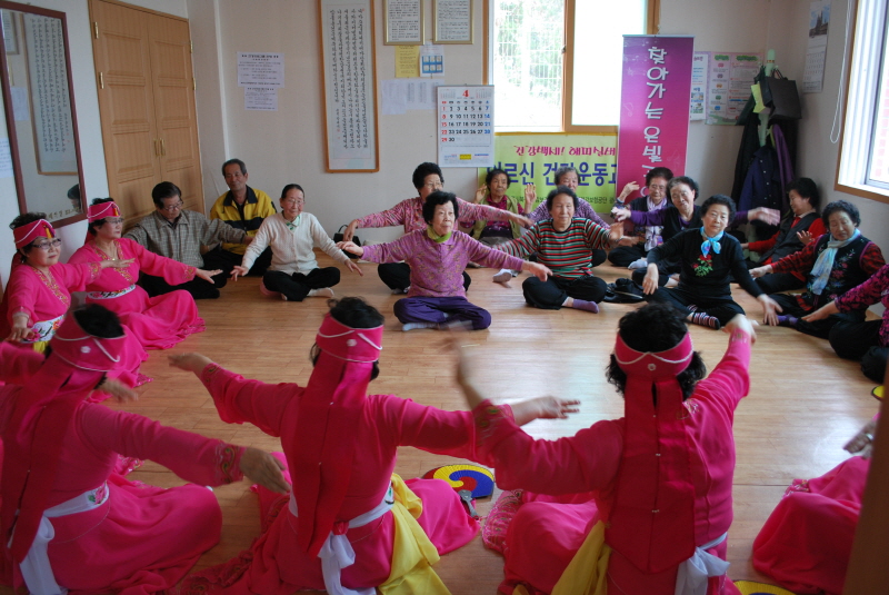 노인일자리사업 은빛공연단을 연계하여 시범경로당 6개소에 우리춤공연을 하였다..흥겨운 우리가락과 함께 우리춤공연을 보며 다같이 어우러진 신나는 한마당이 되었다.