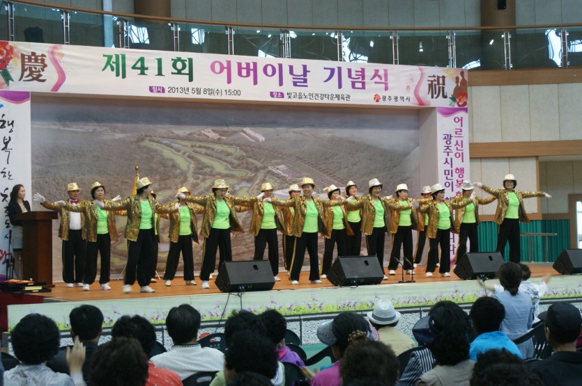 빛고을 건강타운에서 열린 41주년 어버이날 기념행사에서 어르신과 항상함께한 김영옥 관장님이 보건복지부 장관상을 수여하고, 힘찬 응원으로