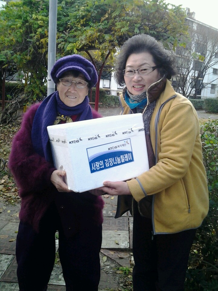 11월 27일 kt&g복지재단에서 겨울나기가 어려운 독거어르신들에게 사랑의 김장을 나눠 주는 행사를 진행하였습니다.