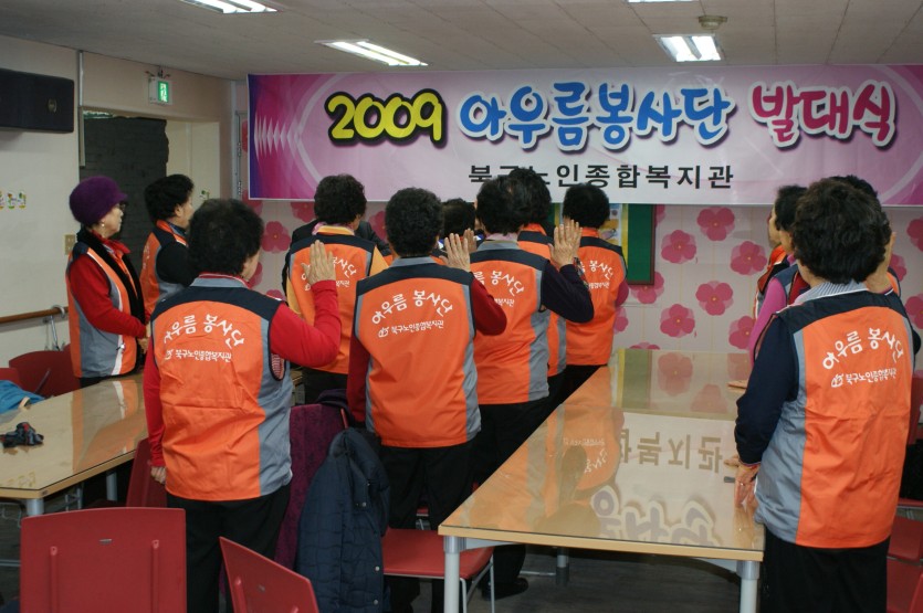 북구노인종합복지관에서 보이지 않게 봉사활동을 하고 계시던 어르신들의 봉사활동 격려와 지지, 활성화를 위해 '아우름 봉사단'이란 이름으로 발대식을 갖았습니다.