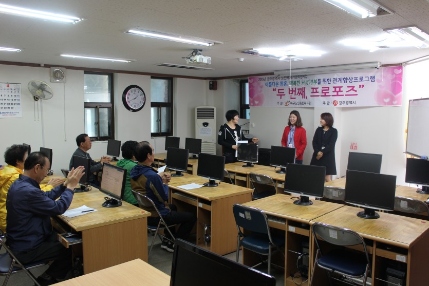 4월 24일(금), 2015년 광주광역시 노인복지기금지원사업으로 선정된 아름다운 황혼, 행복한 노부부를 위한 관계향상 프로그램“두 번째, 프러포즈”사업 설명회 및 발대식을 진행하였습니다.