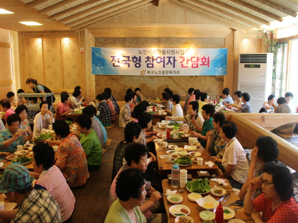 2015년 노인사회활동지원사업 상반기 참여자 간담회를 8월 3일~7일까지 진행하였습니다. 7개 사업단 460명의 어르신을 모시고 진행된 이번 간담회를 통해 사업참여를 통해 느낀점과 미담사례, 개선해야 될 부분들에 대해 대화할 수 있는 계기가 되었으며 참여자 어르신들의 노고에 감사의 마음을 전할 수 있는 시간이었습니다.