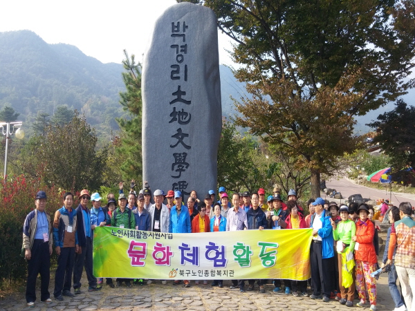 북구노인종합복지관에서는 10월 20일, 22일 두 차례에 걸쳐 노인사회활동지원사업 참여자 어르신들을 모시고 하반기 문화체험활동을 다녀왔습니다. 순천드라마 세트장, 삼성궁, 최참판댁 방문을 통해 단풍이 무르익은 가을의 정취와 이색적인 풍경을 마음껏 느낄 수 있는 좋은 시간이었습니다. 우리 어르신들이 건강하게 오래 오래 활동하셨으면 좋겠습니다.
