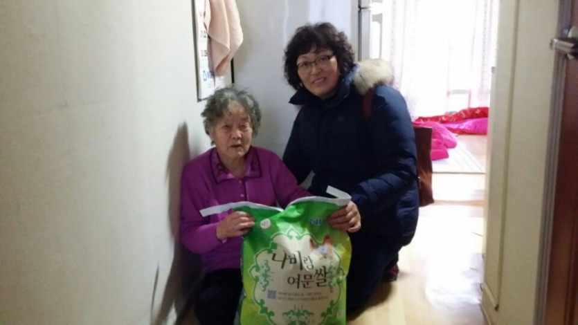 2016년1월4일 독지가(김○○)의 후원으로 사랑의물품(쌀20kg,20포)을 홀로 어렵게 생활하시는 저소득 독거어르신 25명에게 전달하였습니다.