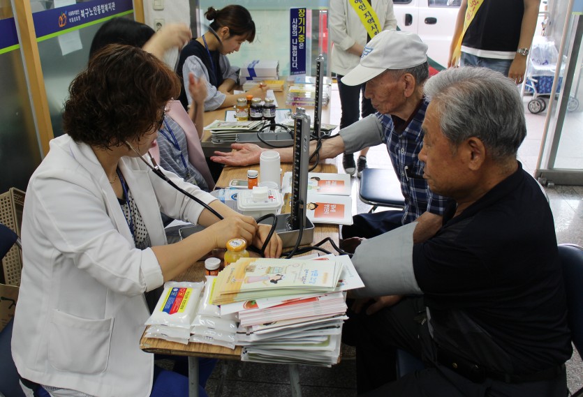 7월 7일 목요일, 두암보건지소와 연계하여 어르신들에게 혈압·혈당 무료검진 및 건강상담을 진행하였습니다.