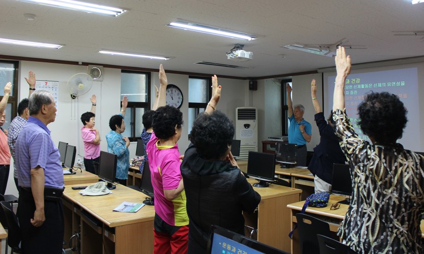 1회기때 교육을 들은신 분들 뿐만아니라 교육을 듣고 싶어하신 어르신들의 참여로 건강에 대한 상식과 간단한 운동법을 배우는데 있어 적극적으로 참여하는 모습을 볼 수있었답니다^^