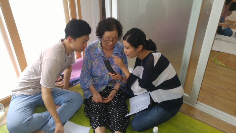 7월6일~21일 사회복무요원 현장실습생과 자원봉사자와 시범경로당6곳을 방문하여 휴대폰활용교육을 실시했습니다. 먼저 자원봉사자와 어르신의 1:1 맞춤교육을 한 후, 어르신들이 핸드폰으로 사진을 찍고 가족들에게 문자를 보내고 답장으로 열심히 배우시라는 가족의 문자를 받고 정말 즐거워하셨습니다. 교육 후에는 어르신들에게 간단한 손 안마와 레크레이션을 해드렸고 어르신들과 같이 간식을 먹으며 즐거운 시간을 보냈습니다. 휴대폰활용교육을 통해 휴대폰 사용에 미숙한 어르신들이 가족과 소통이 잘되고 어르신들의 역량강화에 도움이 되었으면 좋겠습니다.