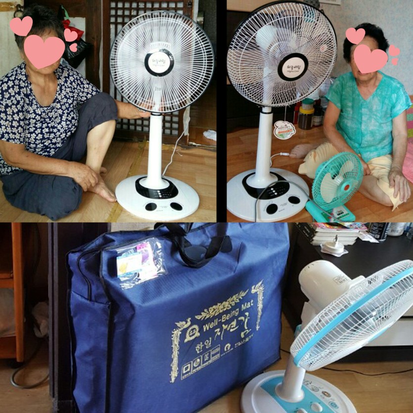 후원해 주신 물품 중 벽걸이형 선풍기 3대는 복지관 사랑의 식당에 설치하였고 스탠드 선풍기 6대는 독거어르신 정**어르신 외 5분에게 전달하였습니다.