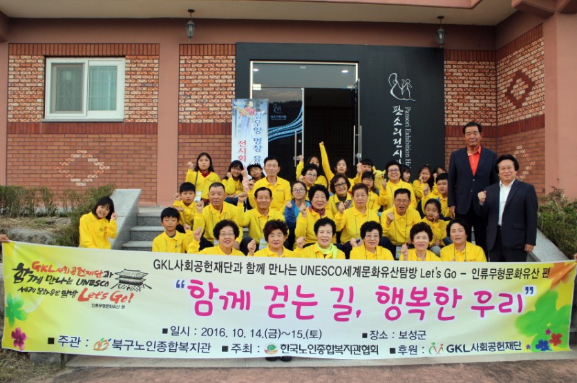 지난 10. 14일~10. 15일에 어르신 15명, 문화초등학교 15명의 학생들과 함께 유네스코에 등재된 무형문화유산 보성 판소리 체험과 탐방을 하였다.