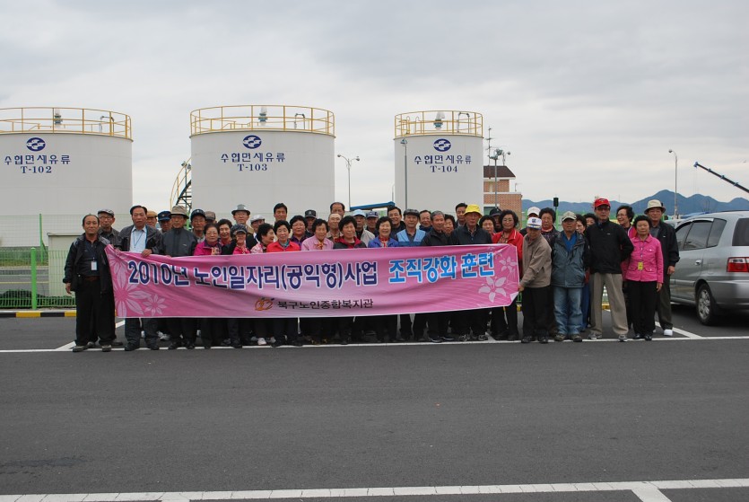 노인일자리사업을 참여하고 계시는 어르신 120명을 모시고 조직강화훈련을 다녀왔다. 어르신들이 단합의 계기가 되었고 많은 격려을 할 수 있었다.
