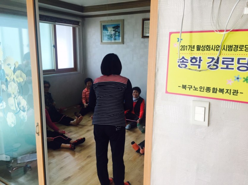 4월 26일(수) 송학경로당 어르신들을 모시고 빛고을 건강타운과 연계하여 물리치료를 해 드렸습니다. 먼저 흥겨운 우리가락에 맞춰 우리춤공연단의 화려한 공연을 관람한 후 , 스트레칭로프를 제공해드리고 건강줄체조를 배우고 손마사지기를 이용하여 물리치료를 해드렸습니다^^