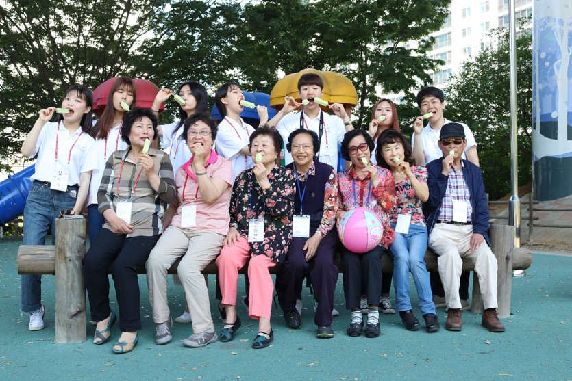 또한 대학생 자원봉사단과 짝꿍을 이루어 전시회 관람과 야외촬영을 진행하면서 세대간의 공감과 소통을 이룰 수 있는 시간이 되었답니다^^