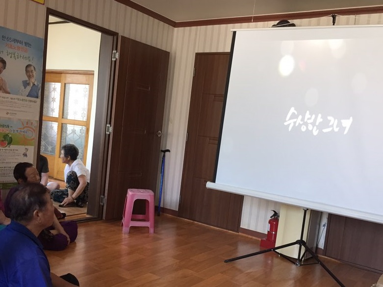 7월 12일(수), 사랑경로당에서 "수상한 그녀" 영화 상영을 하였습니다. 어르신들이 영화를 보시며 즐거워하시는 모습에 저 또한 즐거운 시간이 되었습니다.^ㅡ^ 다소 영화시간이 길었지만 끝까지 봐주신 어르신들 고생하셨습니다~ 다음 영화상영 때에는 더욱 재미있는 영화를 상영하여 어르신들에게 큰 즐거움을 드릴 수 있도록 노력하겠습니다!!