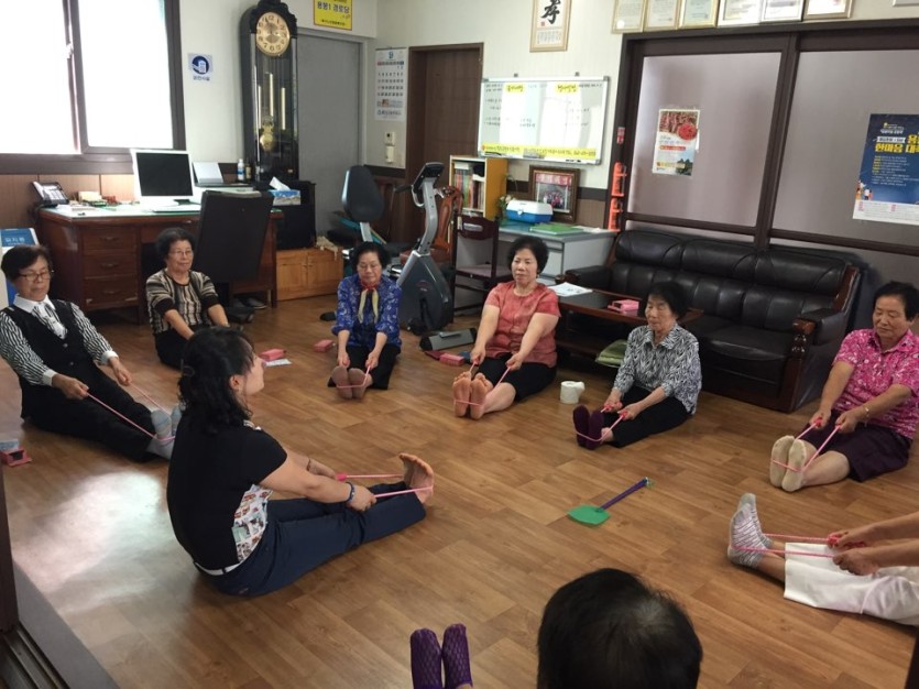 2017년 9월 26일 빛고을건강타운과 연계하여 용봉1경로당 어르신들에게 물리치료를 해드렸습니다. 어르신들은 손지압마사지가 시원하다고 하시며 정말 좋아하셨습니다~ 물리치료 후 빛고을건강타운 선생님께서 스트레칭 로프를 어르신들에게 선물해 주셨는데, 로프를 가지고 할 수 있는 건강줄체조를 가르쳐 주시고 따라해 보는 시간을 가짐으로써 어르신들의 건강증진에 도움이 되는 시간이었습니다!!